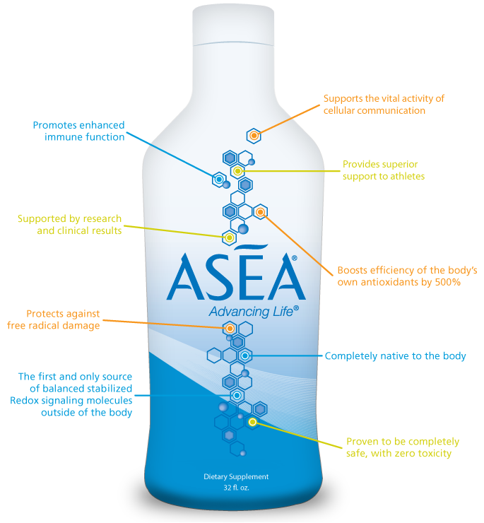 ASEA obsahuje bilióny stabilných a dokonale vyvážených Redox signálnych molekúl, ktoré sú stabilizované v soľnom roztoku, sú to rovnaké molekuly ako v ľudskom tele.